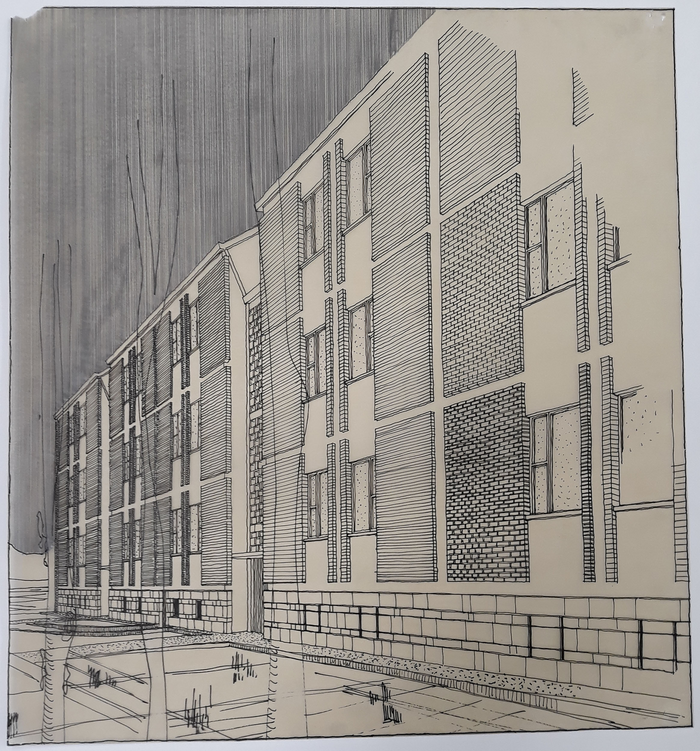 Progetto di edificio residenziale per il Concorso INA Casa B 1955.