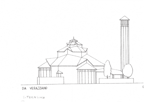 Progetto per la chiesa parrocchiale di Santa Teresina del Bambino Gesù, via Giovanni da Verazzano, Torino. Progetto in collaborazione con gli architetti Gianfranco Fasana, Giovanna Maria Zuccotti, Maria Carla Lenti in Zuccotti, e Gian Pio Zuccotti.
